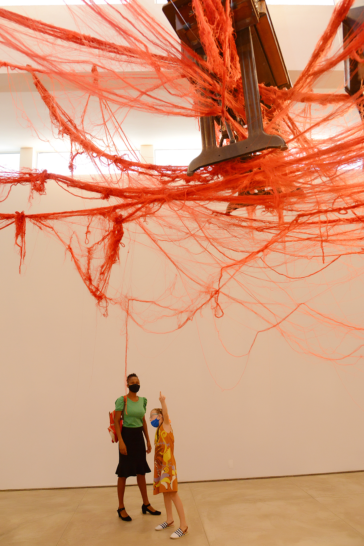 A costura aparece como gesto simbólico e procedimento poético, operando simultaneamente como construção e ruptura. Linhas que se entrelaçam, se acumulam ou se desorganizam tornam visíveis os atravessamentos da experiência humana, sugerindo percursos não lineares, tensões e tentativas de recomposição do sujeito.