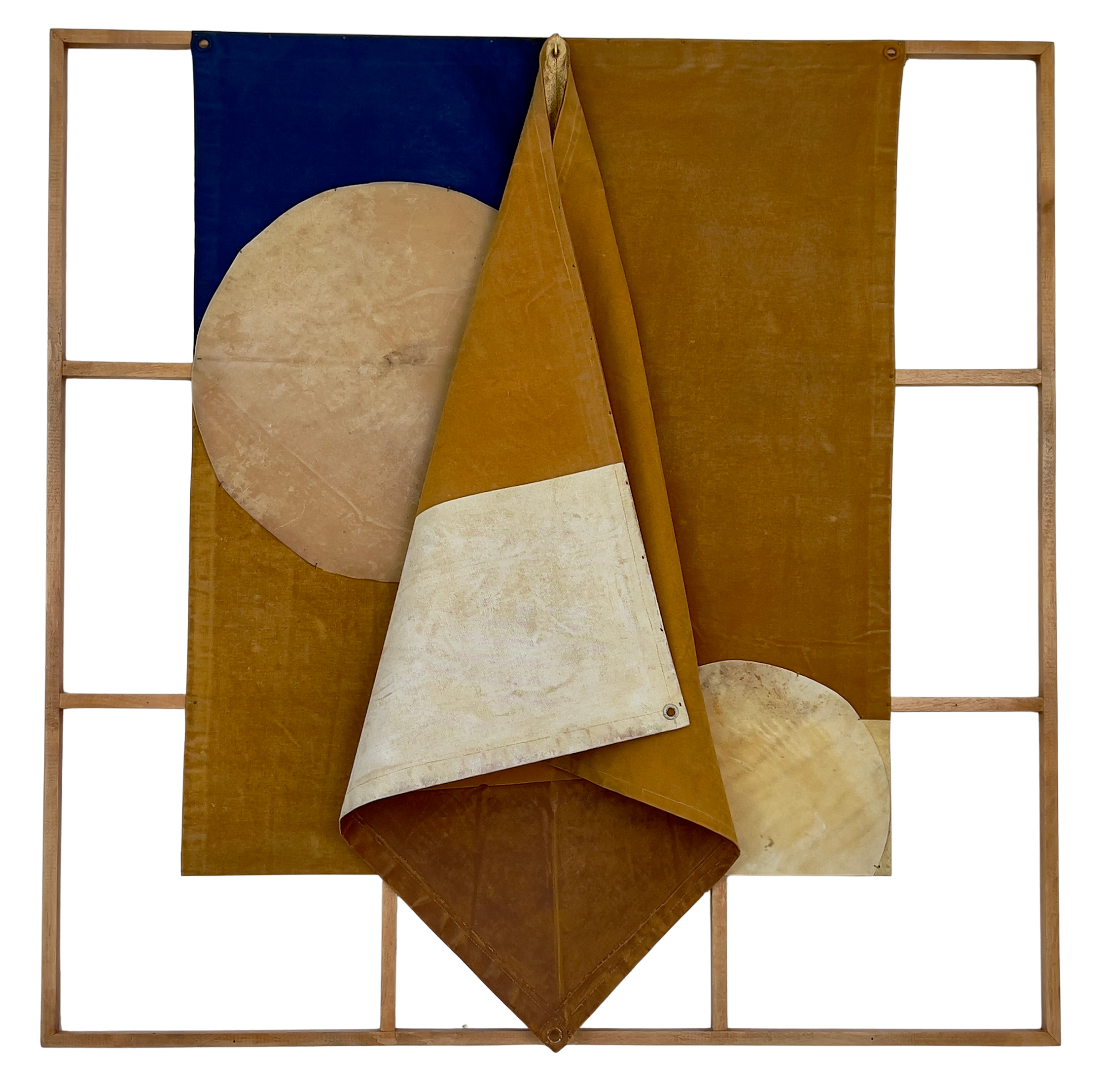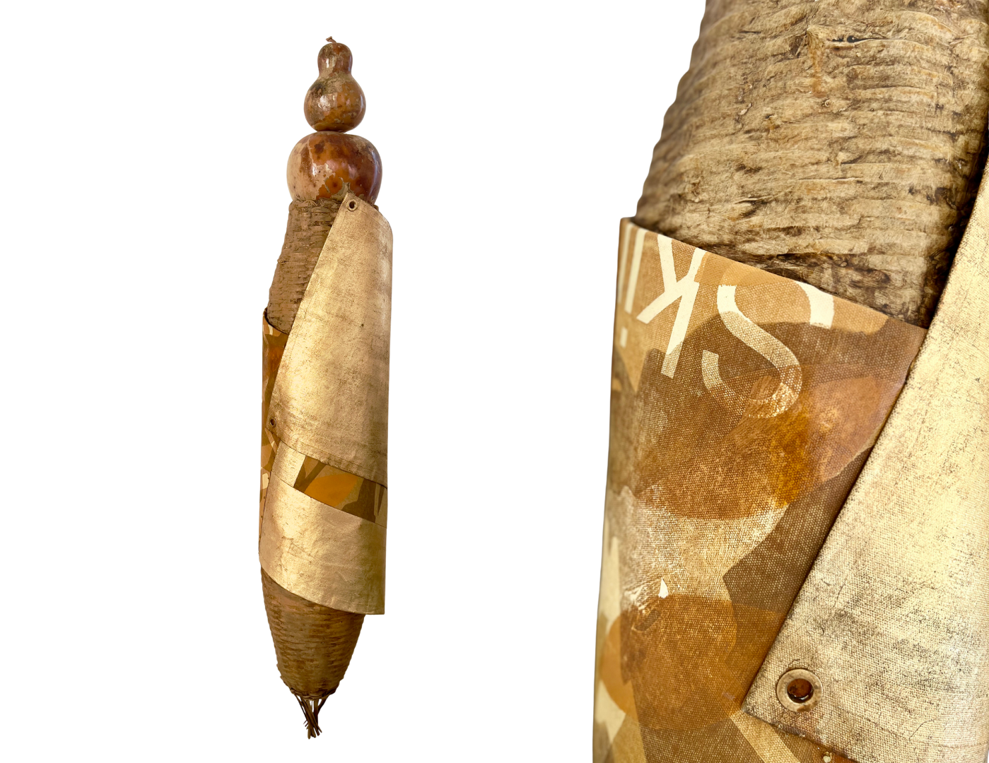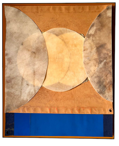 Sua pesquisa parte da relação direta com a materialidade. Elementos como lona de caminhão, folhas de ouro, peles de tambor, sementes e objetos encontrados são incorporados como agentes ativos da obra, carregando marcas de uso, desgaste e história. Ao reunir esses materiais, o artista cria superfícies que revelam camadas de tempo e instauram um diálogo entre o bruto e o luminoso, o orgânico e o geométrico.