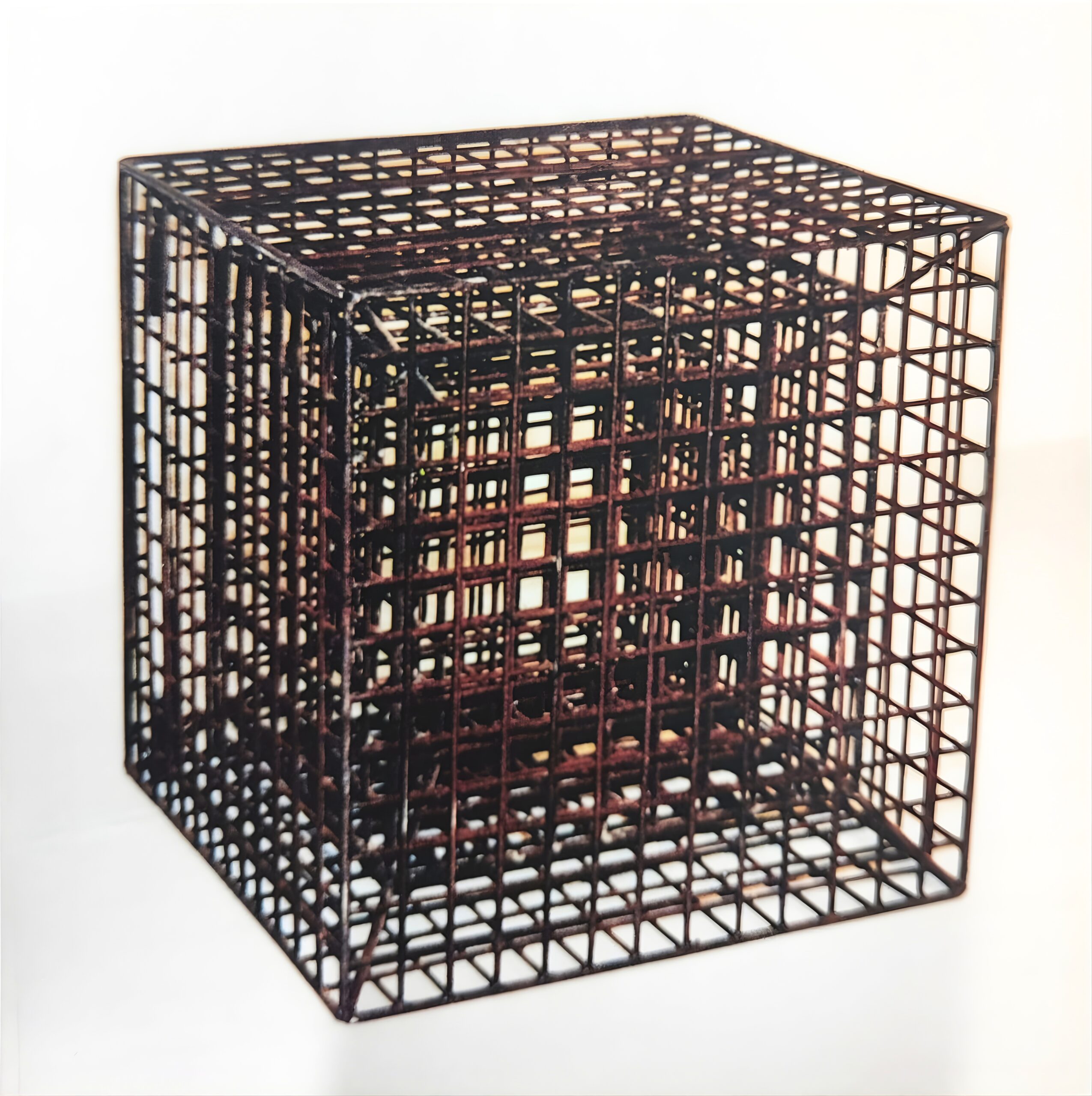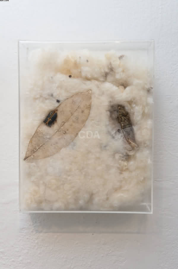 O contraste entre materiais industriais e elementos orgânicos também atravessa sua produção. Superfícies metálicas, lisas e frias, convivem com materiais que evocam calor, textura e fragilidade, instaurando uma tensão sensorial que amplia a experiência da obra para além do visual, incorporando uma dimensão tátil e perceptiva.